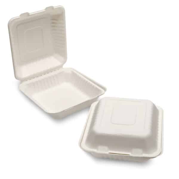 Bagasse Meal Box (205x205x80mm/8") White