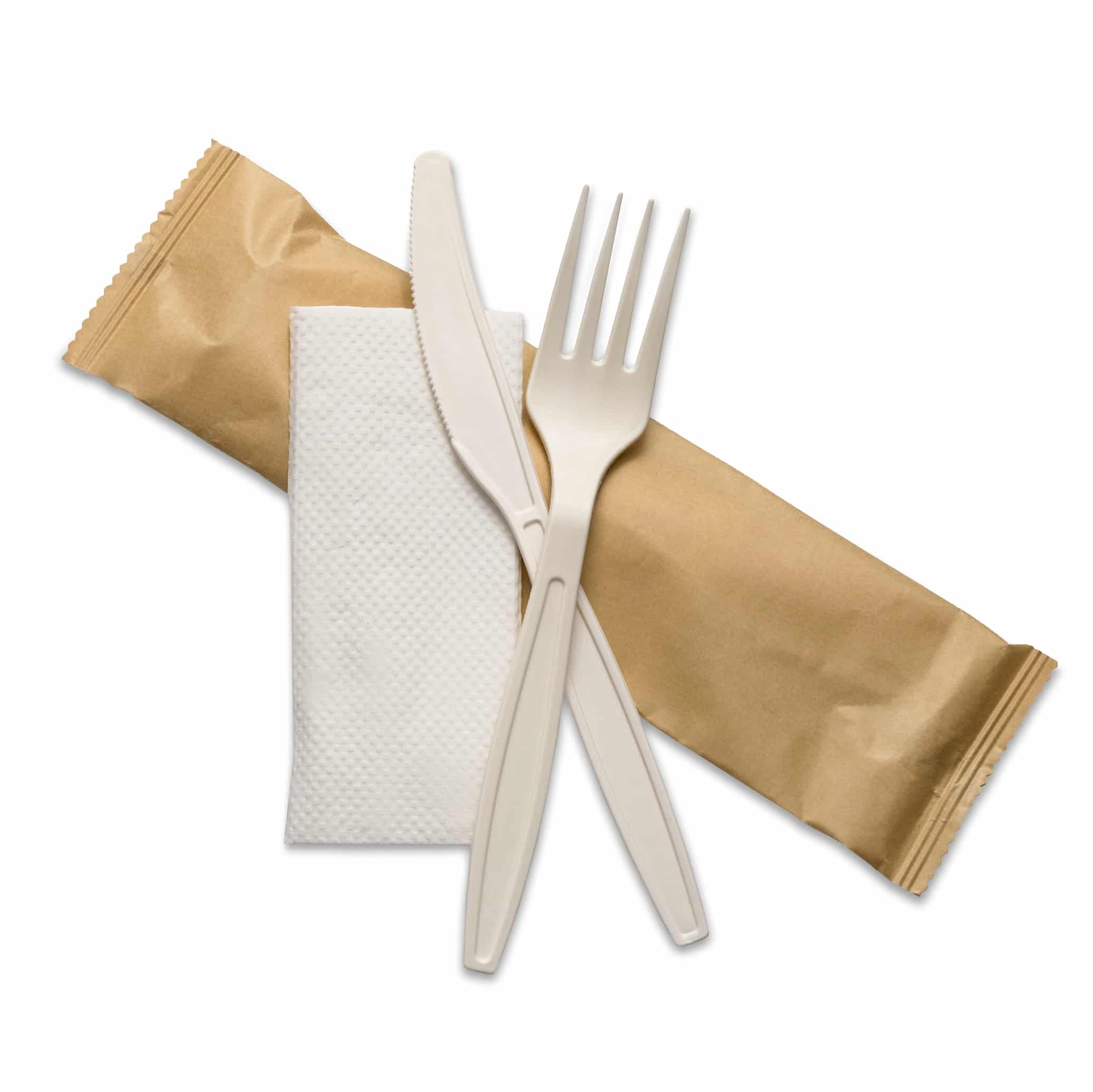 Natural Cornstarch 3in1 Fork+Knife+2Ply Napkin