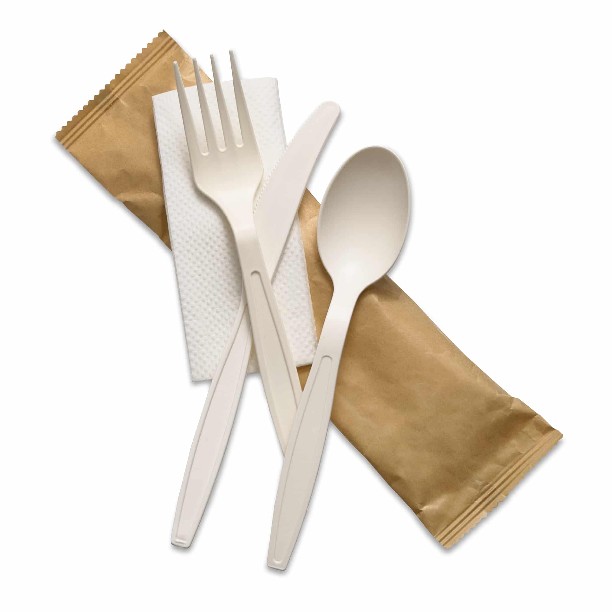 Natural Cornstarch 4in1 Fork+Knife+Dessert Spoon+2Ply Napkin