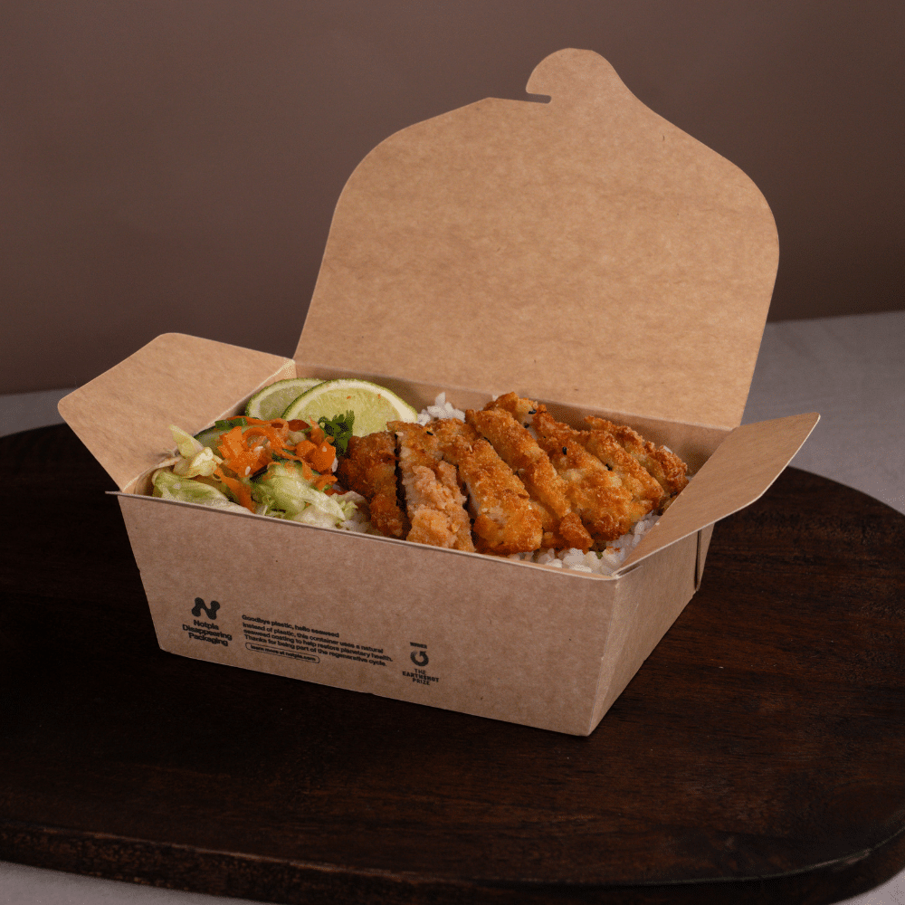 The Notpla™ Food Box [1250ml], a smarter choice for takeaway and food service - perfect for salads, sides and pasta dishes. Made with a 100% plastic & PFAS-free coating officially recognised under the EU Single-Use Plastic Directive. Offers guilt-free disposal in any waste stream. Keeps your business compliant, your impact low, and your packaging hassle-free.
