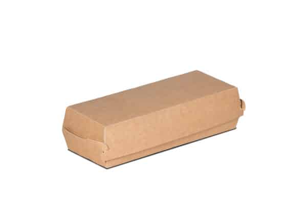 The Notpla™ Hot Dog Clamshell [8x3”], a smarter choice for takeaway and food service - perfect for hot dogs and wraps. Made with a 100% plastic & PFAS-free coating officially recognised under the EU Single-Use Plastic Directive. Offers guilt-free disposal in any waste stream. Keeps your business compliant, your impact low, and your packaging hassle-free.